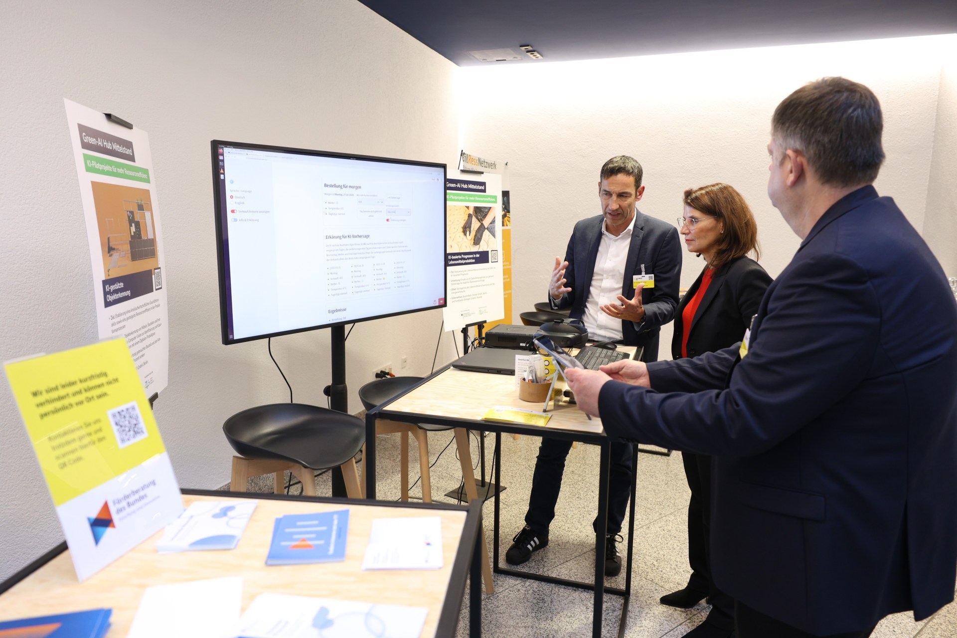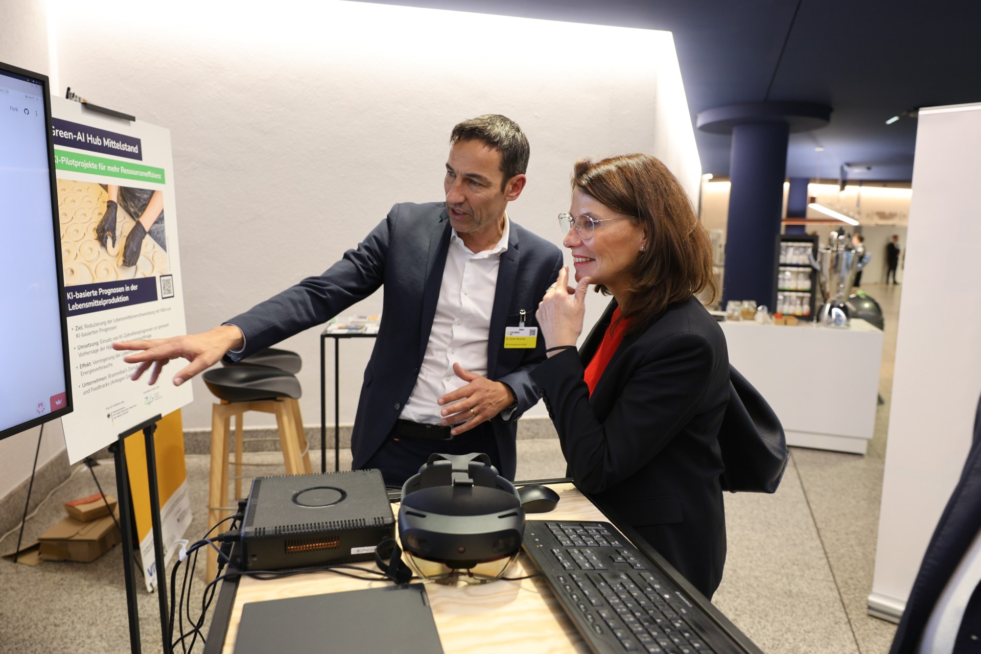 Rita Schwarzelühr-Sutter betonte, dass Initiativen wie der Green-AI Hub Mittelstand ganz konkret demonstrieren, wie KI im Mittelstand nicht nur Innovationskraft freisetze, sondern auch zu Ressourceneffizienz führen könne. So würde der Nutzen von KI für mittelständische Unternehmen unmittelbar sichtbar und rege zur Nachahmung an.